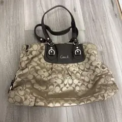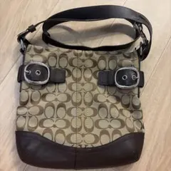COACH コーチ シグネチャー ジャガード×本革 レザー ショルダーバッグ