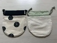 巾着 ポーチ 巾着袋 ハンドメイド 手編み グリーン S