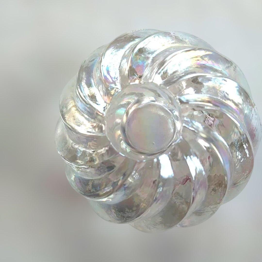 クリスタルガラス製の渦巻きデザインキャンドルスタンド、未使用キャンドル付き。