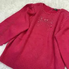 メリレン プルオーバーニット 花柄 立体刺繍 リボン ビーズ セーター 華やか