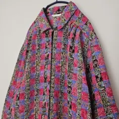 古着 日本製 総柄シャツ アート 星柄 レトロポップ パールボタン カラフル