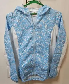 黒とグレーのコントラストにピンクのアクセントが特徴のレディースジャケット。