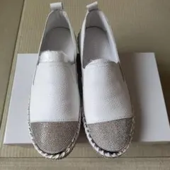 レザー製の黒いウェッジヒールローファー、ストラップ付きでスタイリッシュ。
