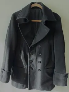 ウール素材のネイビーのピーコート、Lサイズ、シンプルでスタイリッシュなデザイン。