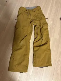 左すそに破れがあります。全体的に使用感はありますが、目立つダメージはなくまだまだご着用いただけます。裏地フリースで暖かく、スノーボードやウィンタースポーツに最適です。