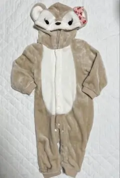 フリース素材のサンタコスチューム、サイズ80cm、帽子付きで可愛いデザイン。