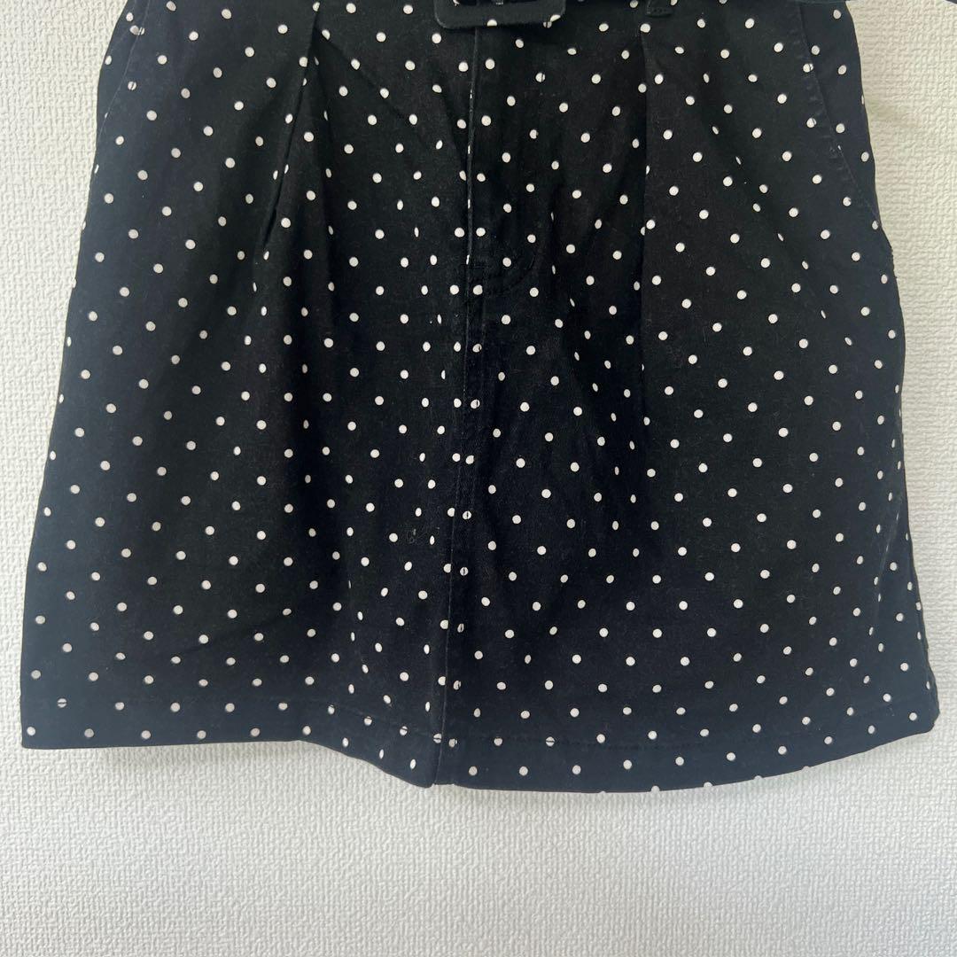 t【ヘザー】Aラインスカート/美品 美脚効果 ドット柄 大人可愛い 膝丈 ベルト
