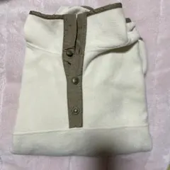 フリース素材のハーフジップジャケット、ホワイトとネイビーの配色が特徴。