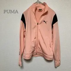 PUMAのピンクと黒のジャージ上下セット、フリース素材で快適。