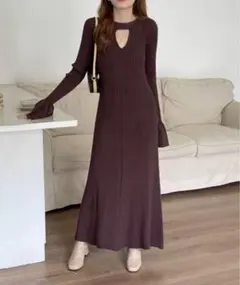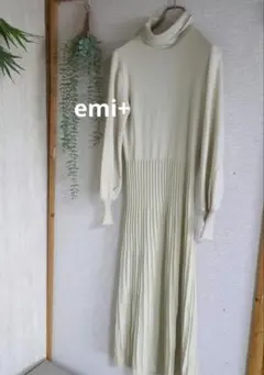 emi+エミプラスリブニットロングワンピース ニットワンピース カーキ