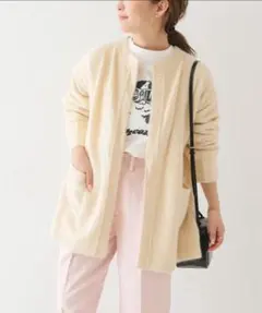 未使用品*スローブイエナ ベルト付ロングニットカーディガン F ブラック ウール