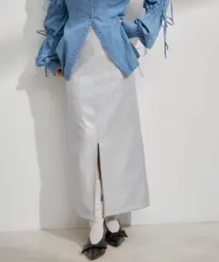 モデルさんが合わせているラベンダー半袖ニットも出品しています。