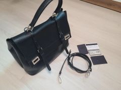 外観は落ち着いたブラック、内側は華やかな真っ赤なカラーで、お使いになるたび楽しくなるお品ですね!ハンドルはレザー使用なので軽くて丈夫ですよ!