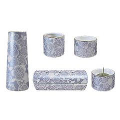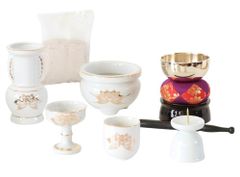 装飾的な彫刻が施された金属製の高脚型具足3個セット。