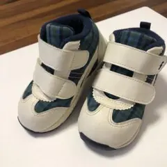 定番の赤と緑のファミリアチェック柄のスリッポン、クロスストラップデザイン。