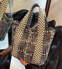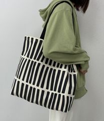 トートバッグ キャンバス ショルダー サブバッグ 北欧風 白黒 男女兼用 大容量