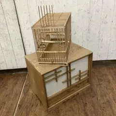 竹製の鳥かごと、それを収納・保護するための木製キャリーケースのセットです。
