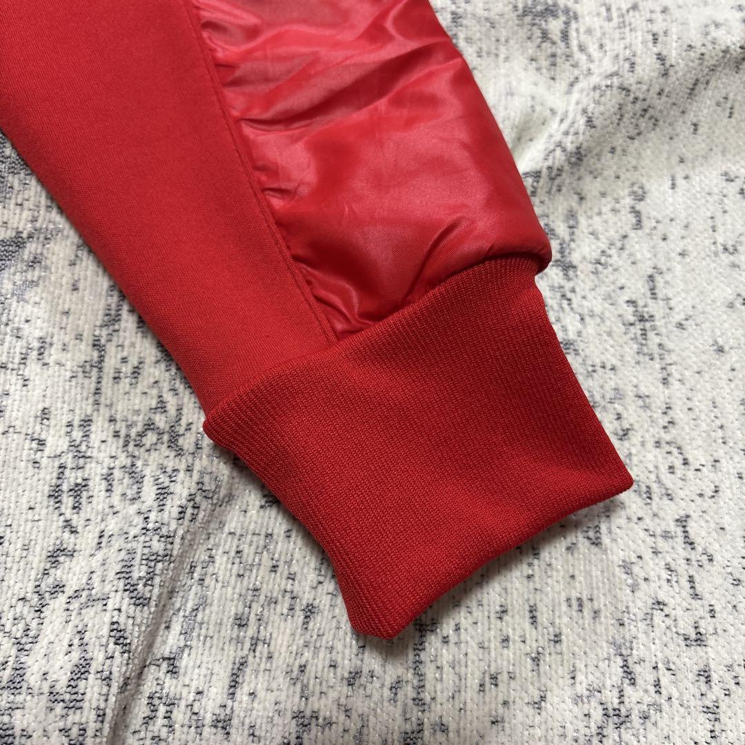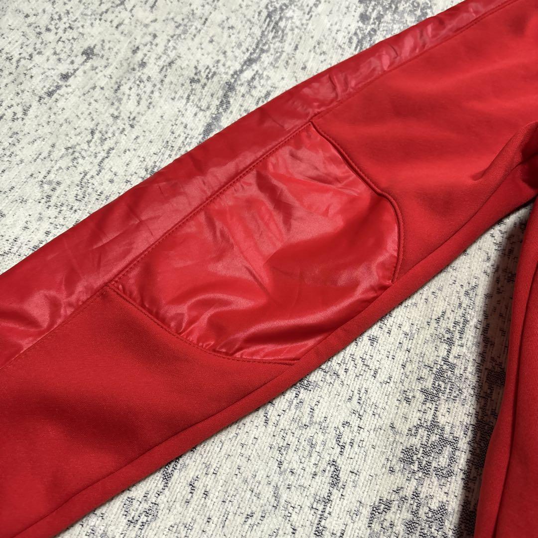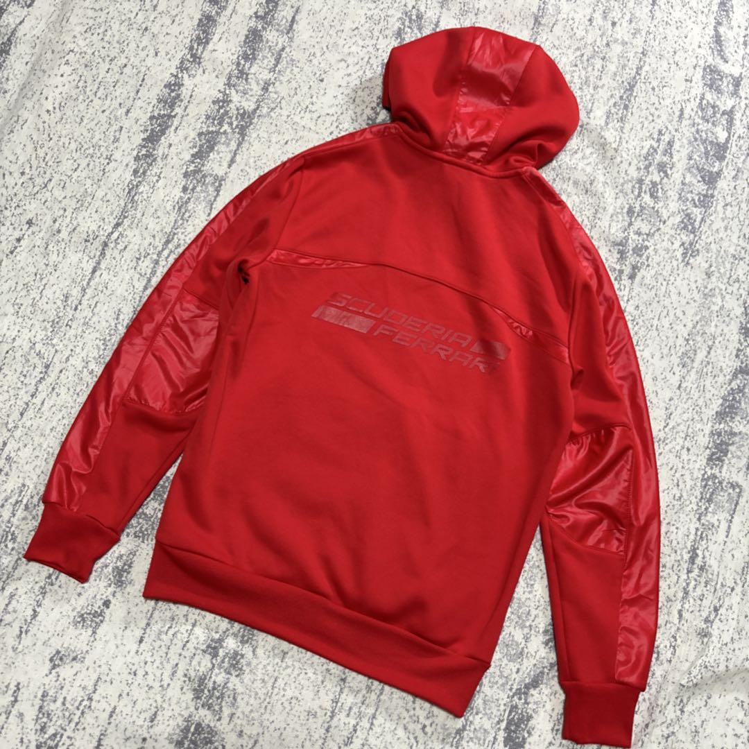PUMAのレッドフルジップパーカー、リブ袖で快適な着心地。