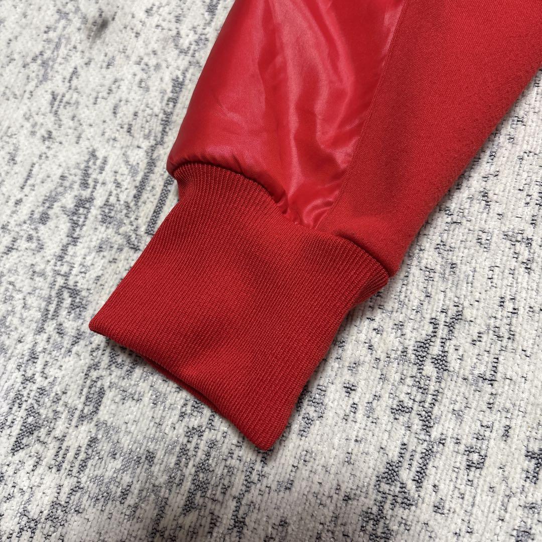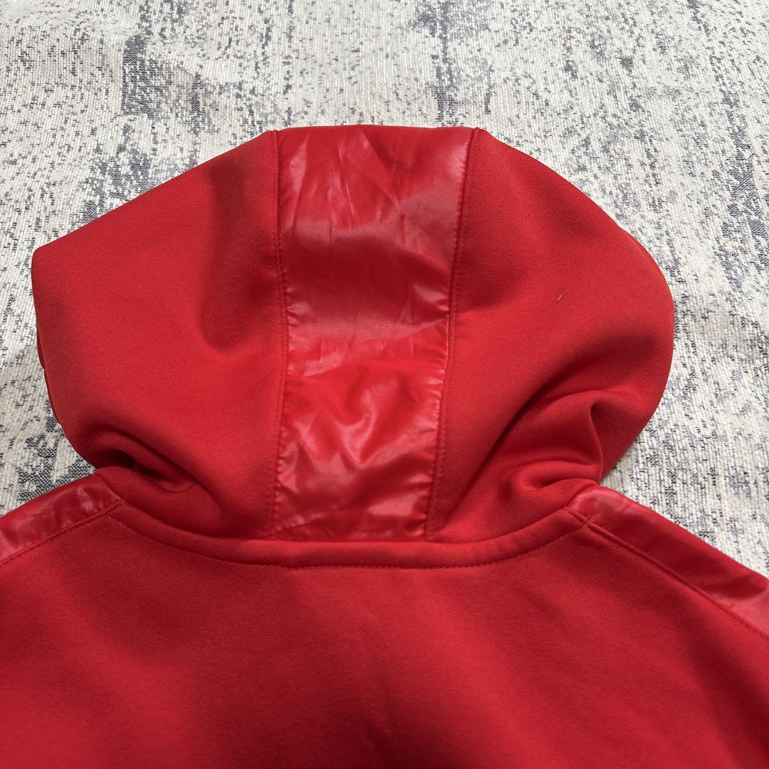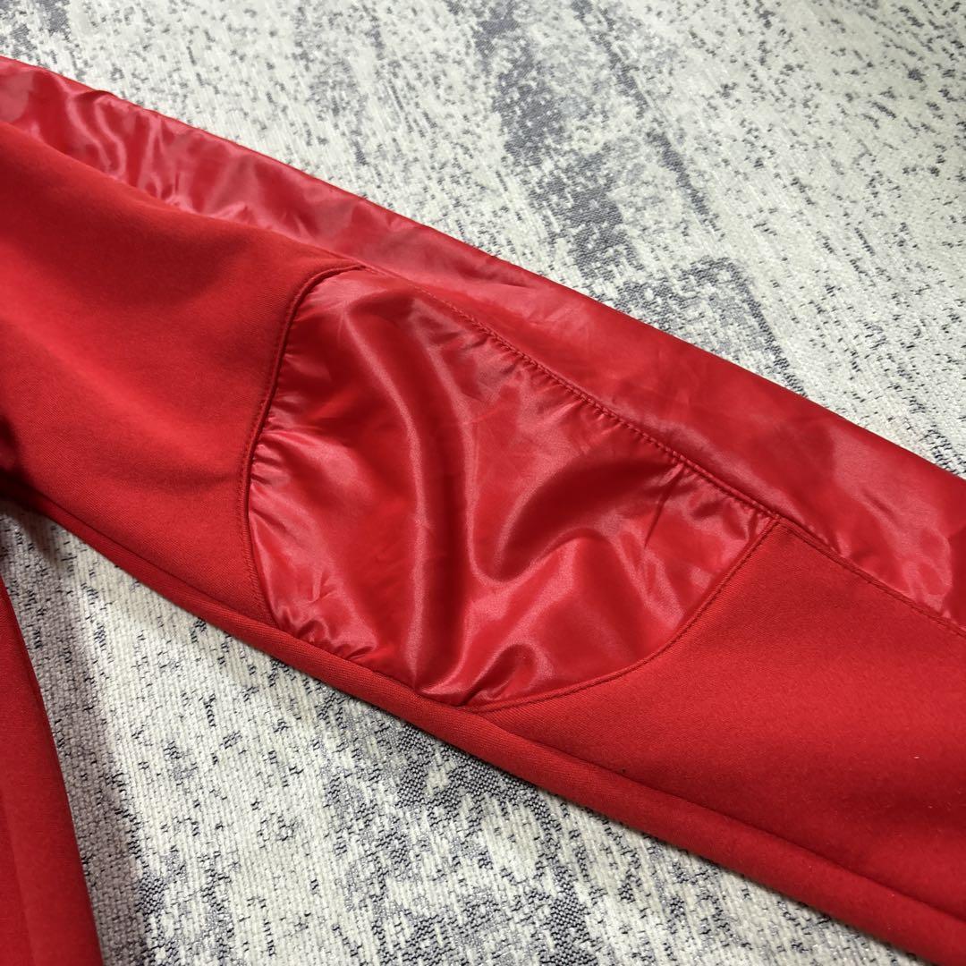 PUMAのレッドフルジップパーカー、リブ袖で快適な着心地。