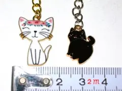 黒 猫 キーホルダー ブラック ネコ ねこ バッグ 鍵 花 3匹 パール 真珠