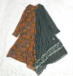 【美品】ジーナシス マキシドレス バロック&ダルメシアン柄 異素材切り替え F