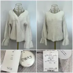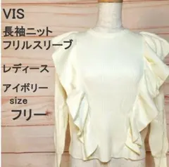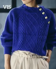 ビス ニット セーター ハイネック 無地 ボリュームスリーブ レーヨン ブルー
