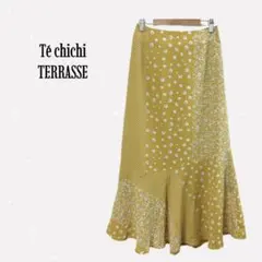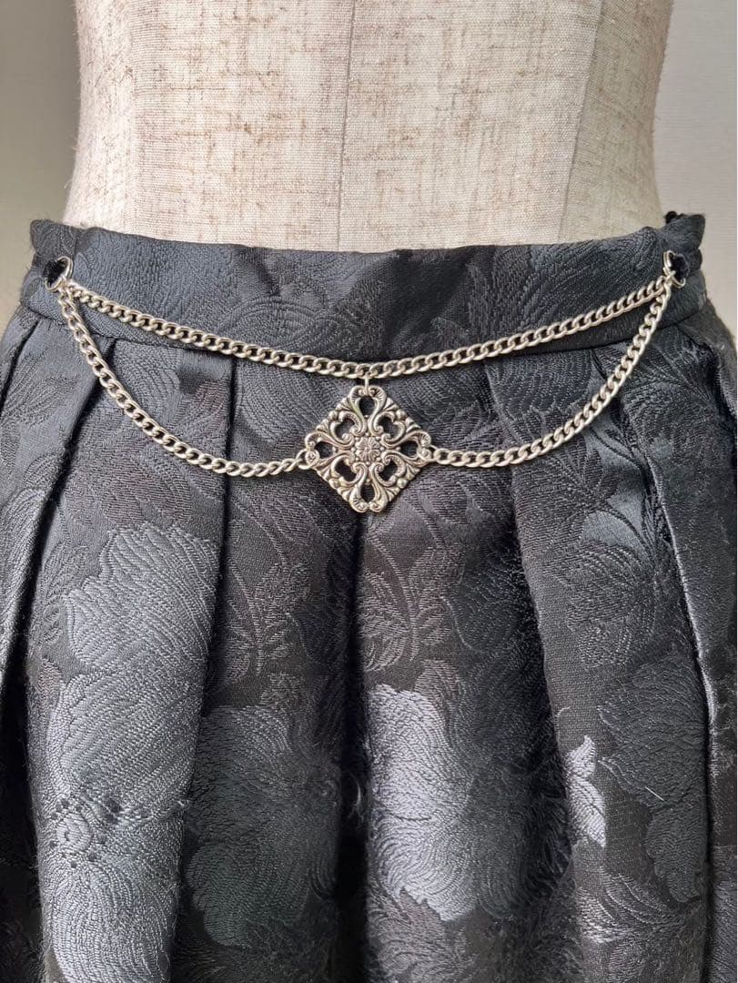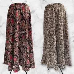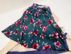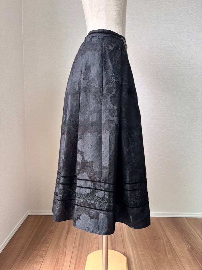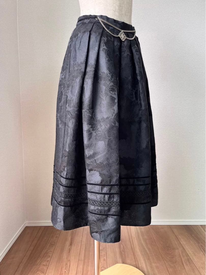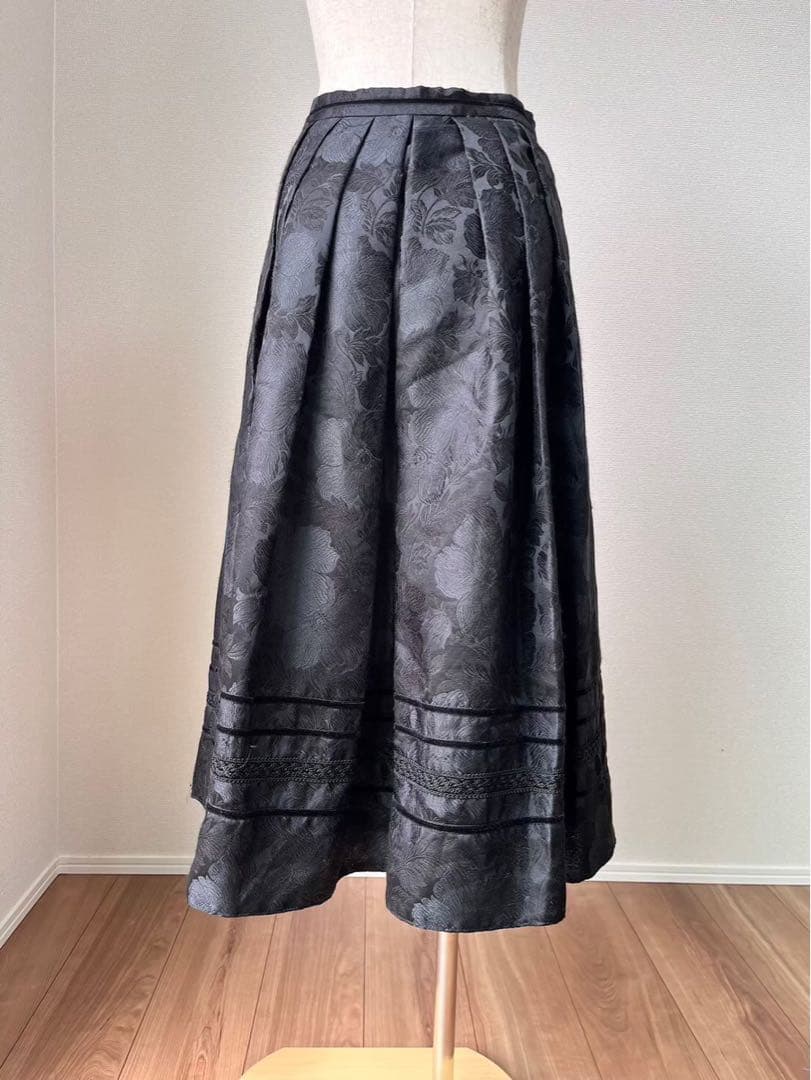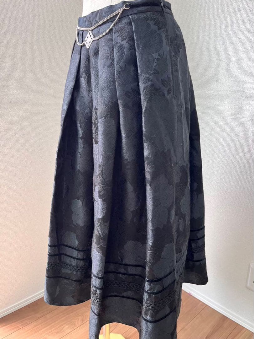 総刺繍 花柄刺繍 ウエスト飾り ひざ下丈 タック ロングスカート