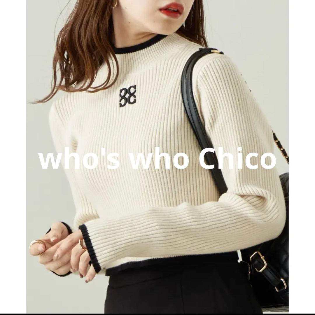 ☆who's who Chico☆アイボリー ハイネック ニット バイカラー
