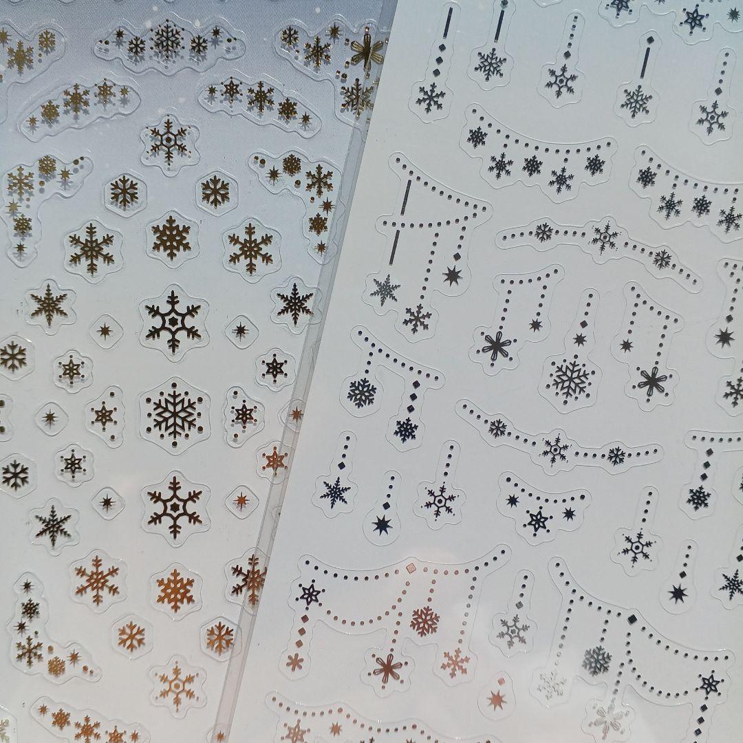 ゴールドとシルバーの星と雪の結晶デザインのミニクリアシール2シートセット。