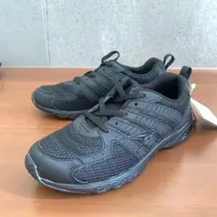 ホワイトの合成皮革とメッシュのスニーカー、ベルクロと紐のデザインで履きやすい。