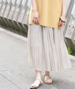 KBF+ プリーツスカート ベージュ ロング シアー ウエストゴム Fサイズ