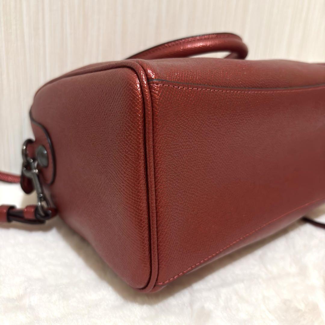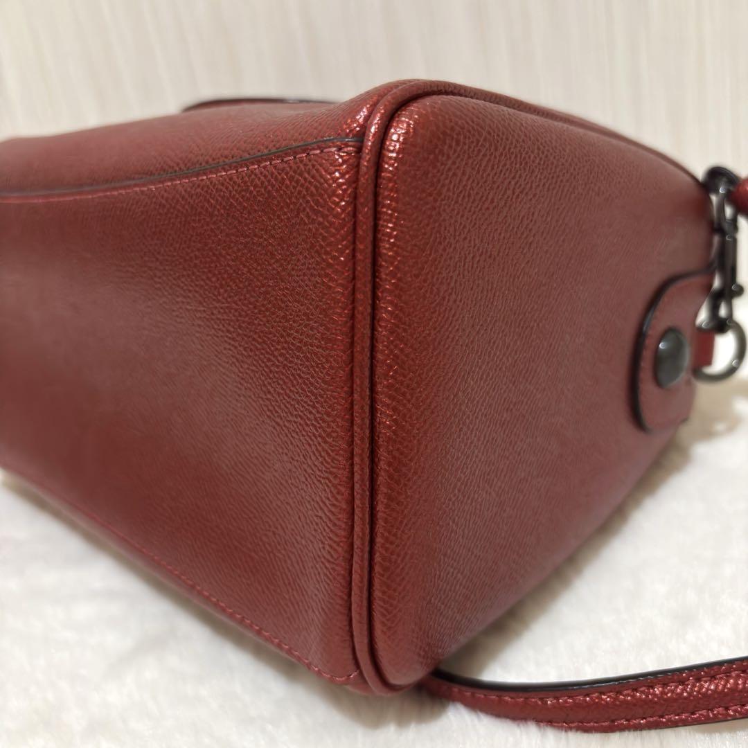 COACH コーチ 2way ミニボストン ショルダーバック メタリック レッド