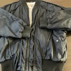 MA-1タイプのブルゾンです。シンプルなデザインで、様々なスタイルに合わせやすいブラックカラーです。目立った傷や汚れはなく、比較的きれいな状態です。