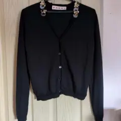 このMARNIのカーディガンは、Vネックデザインと異なる色の袖が特徴的で、個性的なスタイルを演出します。