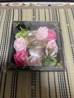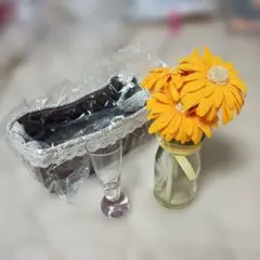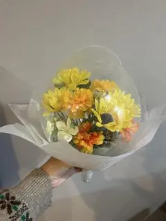 赤と白の造花アレンジメント、シンプルなデザインでギフトに最適。
