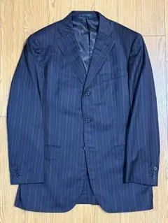 Ermenegildo Zegna/エルメネジルドゼニアのセットアップスーツです。ダークネイビーのストライプ柄、サイズはMサイズ相当となっております。