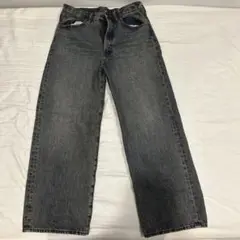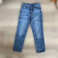 ダークブルーのストレートデニム、デニム素材でシンプルなデザイン。