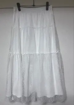 新品未使用 タグ付き 今期 今季 完売スーパービューティー 2025年春夏 ストライプ柄切替スカート ウエストゴム レース フレアスカート Aラインスカート