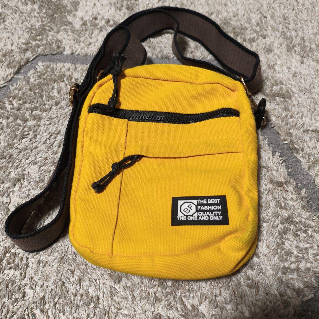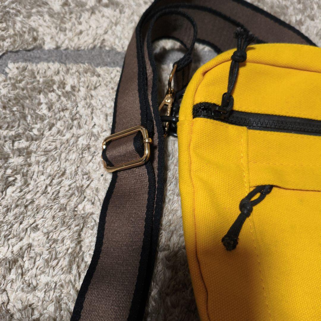 SHEIN フロントポケット付きのイエローキャンバスショルダーバッグ、調整可能なストラップで使いやすい。