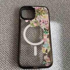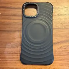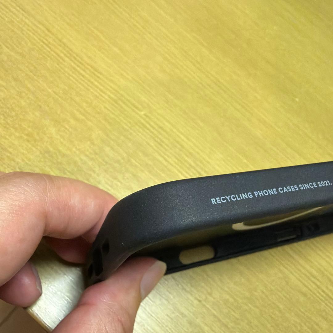 エンボス加工のロゴが施されたブラックのiPhoneケース、MagSafe対応で機能的。