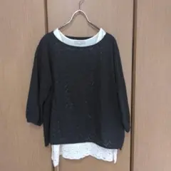 首元にやや色褪せあり、前面右下に小さな汚れがあります(写真参照)。
