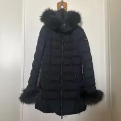 フード付きのダウンジャケット、ジッパー開閉、ポケット付きで機能的。