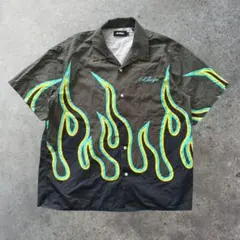 XLARGEのブルーのワークシャツ、ロゴ刺繍付き。