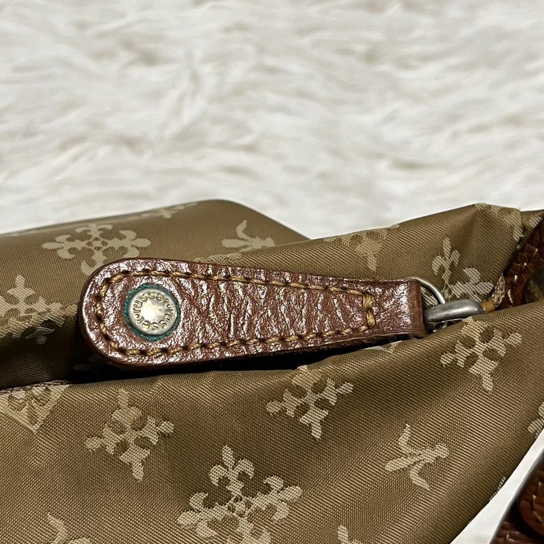 russet ラシット ショルダーバッグ 斜め掛け ナイロン モノグラム レザー ロゴプレート ギャザー