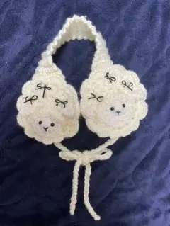 ハート ふわふわ イヤーマフ 耳当て 編み物 かぎ針編み ハンドメイド