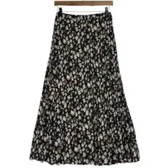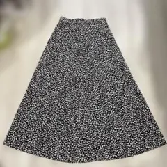 美品 ローリーズファーム【F】フレアスカート ロング 花柄総柄 白黒 可愛い