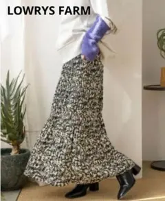 LOWRYS FARM、ローリーズファーム、ロングスカート、マキシスカート、花柄、小花柄、フラワー、ホワイト、ブラック、白黒、モノトーン、Aライン、フレア、美品、Fサイズ、フリーサイズ、レディース、フェミニン、ガーリー、可愛い、春夏秋、オールシーズン、カジュアル、デート、お出かけ、旅行、リゾート、ウエストゴム、楽ちん、体型カバー、美脚、脚長効果、トレンド、人気ブランド、プチプラ、おしゃれ