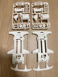 【 ボディとカラーコーディネートしたスーパーIIシャーシを採用 】 シャーシは剛性を強化し拡張性を高めたスーパーIIを採用。本体はホワイトのABS樹脂製、13mmプラローラーやリヤステー、ギヤカバーなどのAパーツはビビッドなレッドのABS樹脂製です。バンパーやリヤステーはパーツ取り付け穴を複数用意して、幅広いセッティングが可能。さらに、ターン式スイッチや2点固定式リヤステーなど、走りのための装備も充実しています。ホワイトのディッシュホイールにはグレイのハード小径ローハイトタイヤを標準装備。ギヤ比はパワフルな走りを発揮する4:1をセットしました。ボディとシャーシを紅白でコーディネートした、おめでたい新年を祝うのにぴったりのマシンです。