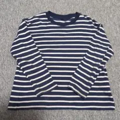 ベージュのリブ編み長袖カットソー、ハイネックデザインで暖かさを提供。
