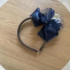 黒と白のリボンにパール装飾が施されたカチューシャ。